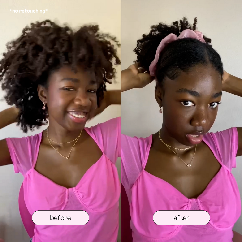 yes <3 hair-gel is a one-stop styler for wet set curl styling OR slick-backs. all without the crisp + crunch. for slick backs, apply a pump of hair-gel on damp hair. part and brush to desired slick-back style. use additional hair-gel as needed to set and slick into scrunchie, hair-tie or claw clip.